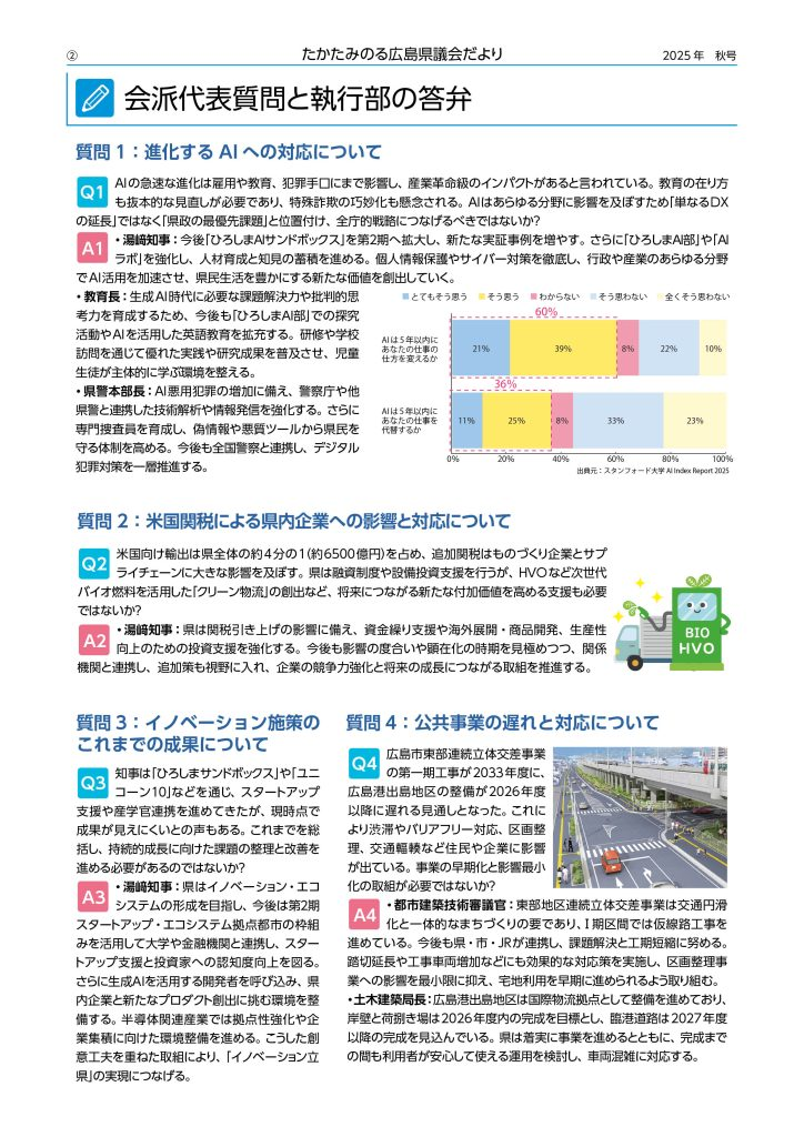 本号では、高田が会派を代表して行った「会派代表質問」の内容などを中心に掲載しています。