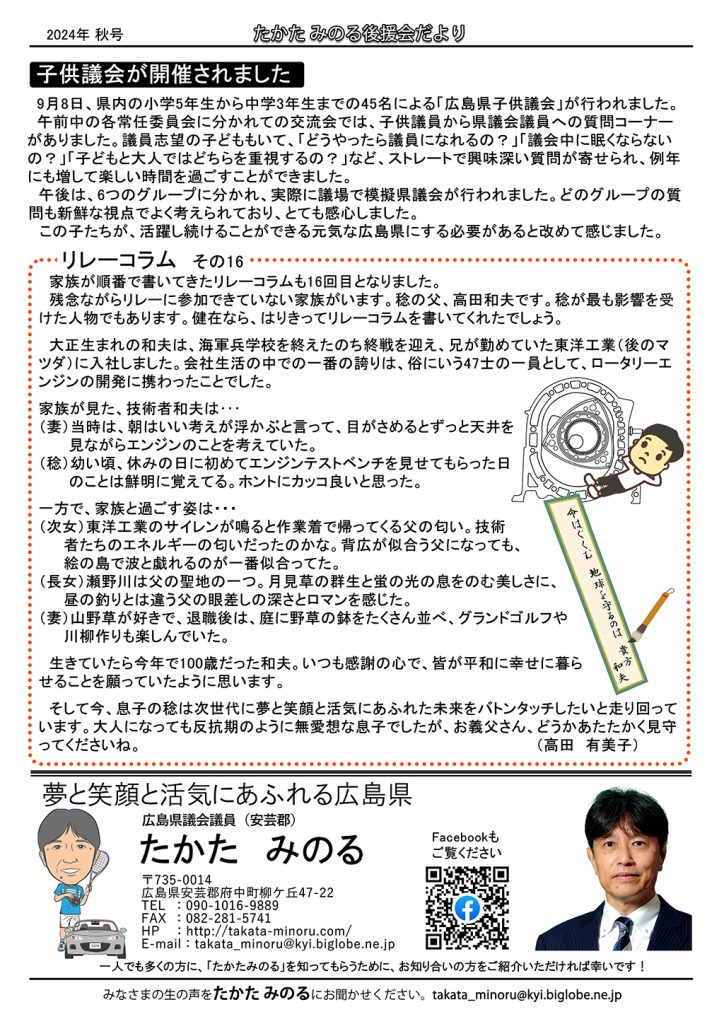 ツイート ■ 10月28日(月) 後援会だより(秋号)発送 広島県議会便りと合わせて、後援会だよりも発送しました。