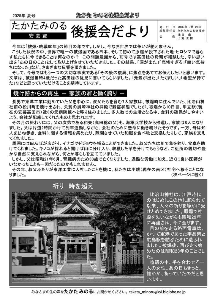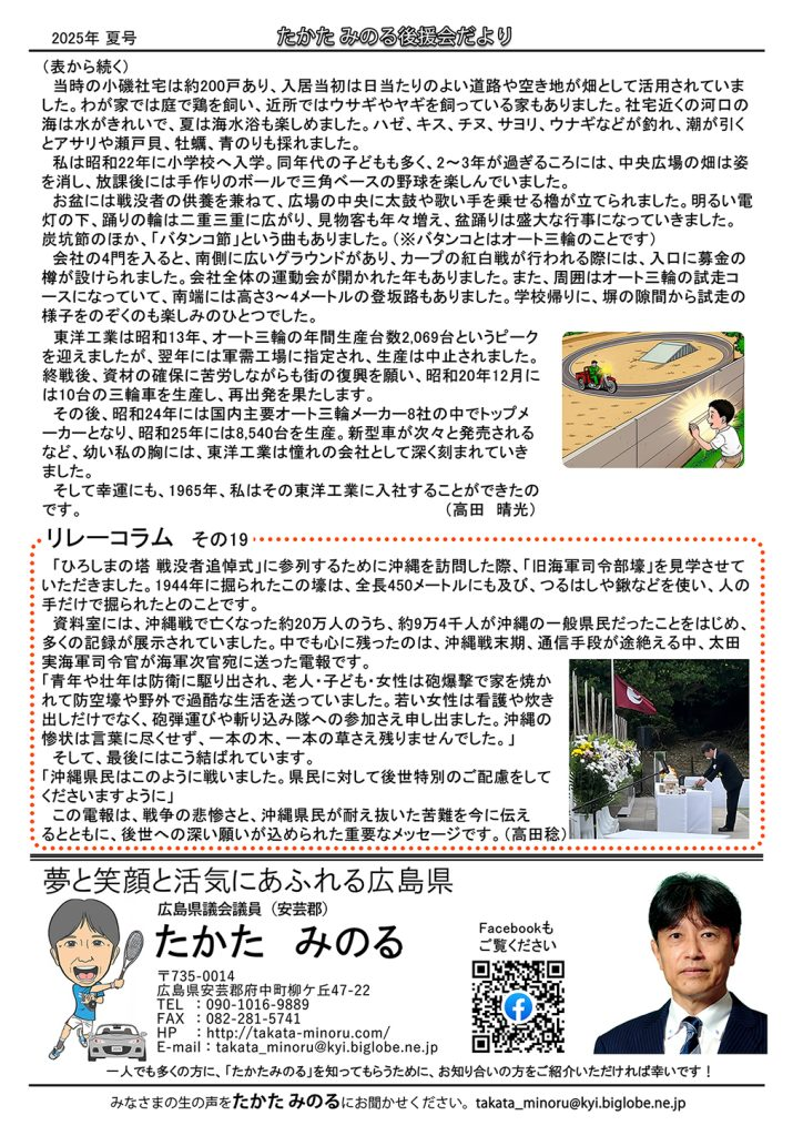 ツイート ■ 7月11日(木) 後援会だより(夏号)発送 広島県議会便りと合わせて、後援会だよりを発送しました。